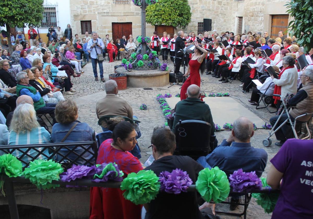 La plaza Juan de Valencia fue el escenario para el segundo Encuentro de Musicoterapia para Mayores de Úbeda- Torreperogil 'Canciones de toda la vida'. Alrededor ... de 80 mayores interpretaron una gran variedad de canciones que han marcado el panorama musical, para deleite del público asistente, que se mostró muy animado durante toda la velada y que acompañó con palmadas en algunos momentos.