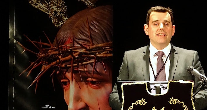 Concluyó entre la ovación calurosa de los asistentes que lo siguieron con atención desde que fuera presentado por su amigo en la vida y compañero en su experiencia cofrade, José Antonio Gámez, que en su introducción ofreció una completa y afectuosa semblanza del pregonero.