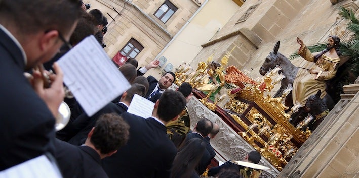 Pese a la presencia intermitente de lluvia y amenaza constante, la Real Cofradía de la Entrada de Jesús en Jerusalén y María Santísima del Amor, ... conocida popularmente como el Borriquillo, se echó a la calle para disfrutar de su día, aunque con un paso algo más ligero de lo normal y un cambio de planes en su recta final, acortando el itinerario inicialmente previsto.