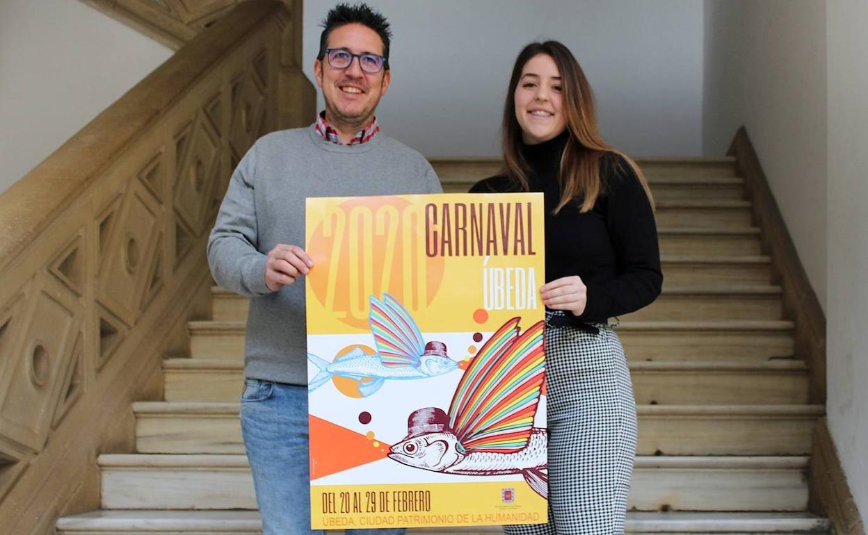 El concejal de Festejos, Jerónimo García, mostró su satisfacción por la colaboración con la Escuela de Arte y el talento demostrado por su alumnado, pues «los carteles que presentaron tenían una calidad extraordinaria». Finalmente se optó por el realizado por María Talavera, quien aseguró que había invertido en ello tres semanas de trabajo. Según explicó, quería huir de elementos típicos como la máscara y el confeti. Es por ello que la idea final fue plasmar elementos de uno de lo momento clave del Carnaval, que es el entierro de la sardina. Así se pueden observar unos peces con alas, que hacen un guiño al artista ubetense Joaquín Sabina, puesto que llevan bombines como el cantante. «Al final el esfuerzo y el tiempo que le he echado ha dado su fruto», indicó.