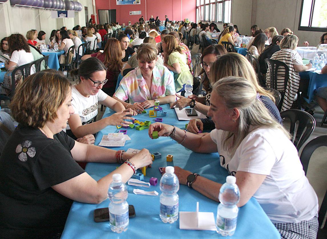 Esta actividad pedagógica se organizó de una manera muy dinámica, dividiendo a los docentes en equipos para que pudieran probar personalmente todo el material de forma rotatoria, valorando posteriormente sus utilidades. Fue una especie de 'cata' en la que los participantes analizaron la polivalencia de los juegos y su aplicación en los centros educativos, así como los beneficios que conlleva su uso en las etapas de Educación Infantil y Educación Primaria. Y con un ambiente en el que destacó el compañerismo y la cooperación, los asistentes pudieron intercambiar experiencias y recursos.