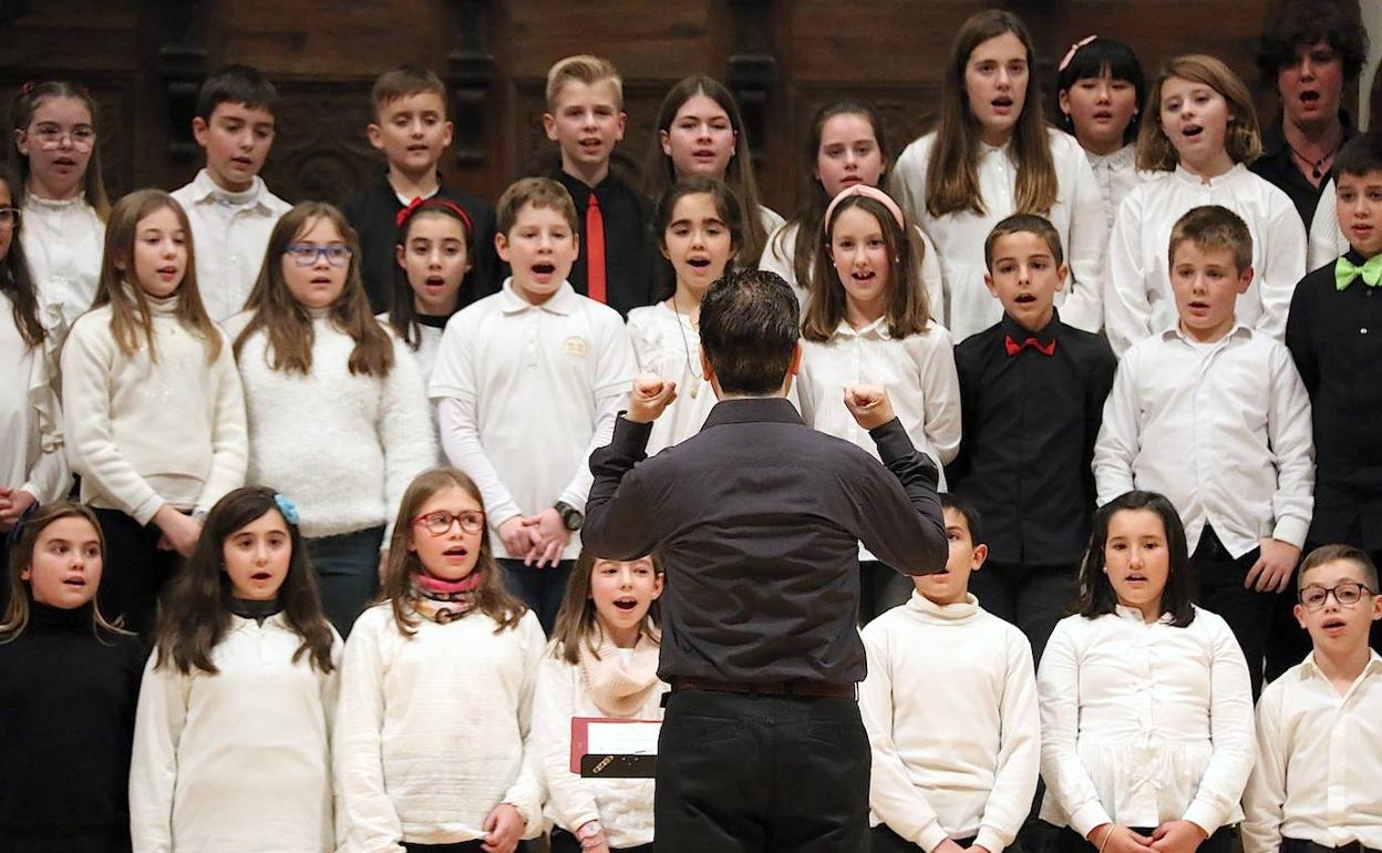 En la tarde de ayer lunes tuvo lugar el primer recital en el auditorio del centro cultural Hospital de Santiago, donde se pudo disfrutar del coro del conservatorio con una selección de obras muy navideña. Y también subió al escenario la orquesta de guitarras, que celebró su primer aniversario pues su presentación en sociedad tuvo lugar en este mismo ciclo del pasado curso.