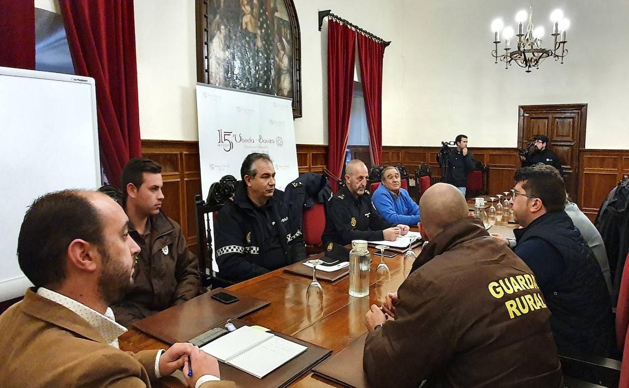 La sala de comisiones del Ayuntamiento acogió la reunión de seguridad para la coordinación y preparación de la campaña de recolección de aceituna 2019-2020, ... que estuvo presidida por el concejal de Agricultura, Javier Gámez Mora, y a la que asistieron representantes de la Guardia Civil, Policía Nacional y Policía local, así como de cooperativas de la ciudad y del servicio de Guardería Rural.