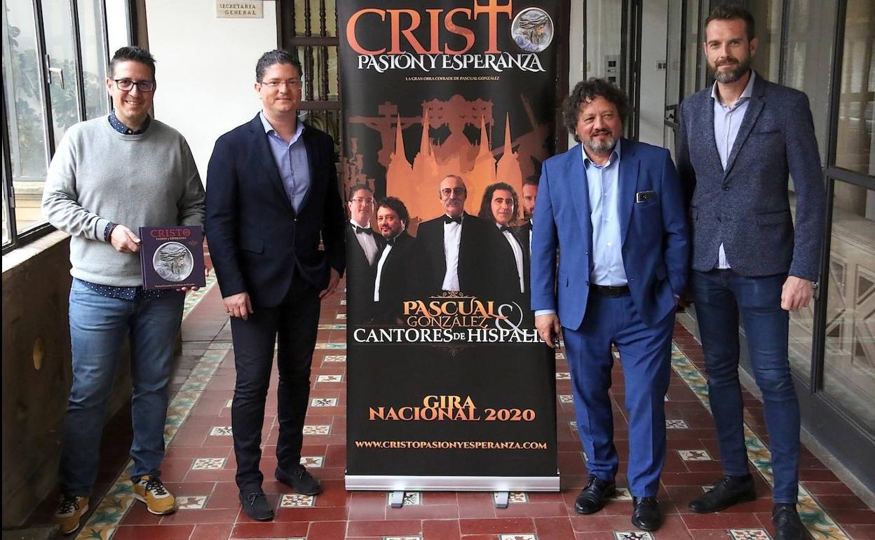En 'Cristo. Pasión y Esperanza', que recoge el testigo de la anterior propuesta' La Pasión según Andalucía', Pascual Gonzalez y los dos actuales Cantores de Híspalis están acompañados por cinco músicos. Cuentan además con la colaboración especial de Alex Hernández y Diego Benjumea como últimas incorporaciones al grupo, un quinteto de voces del coro gaditano 'La Caleta' de Julio Pardo y seis virtuosos de la corneta de Las Tres Caídas de Triana. En total, 21 personas sobre el escenario y una puesta en escena muy cuidada a base de proyecciones, que dan forma a un espectáulo faraónico de más de dos horas de duración. Respecto a la dirección musical, corre a cargo de Héctor Pérez Cala.
