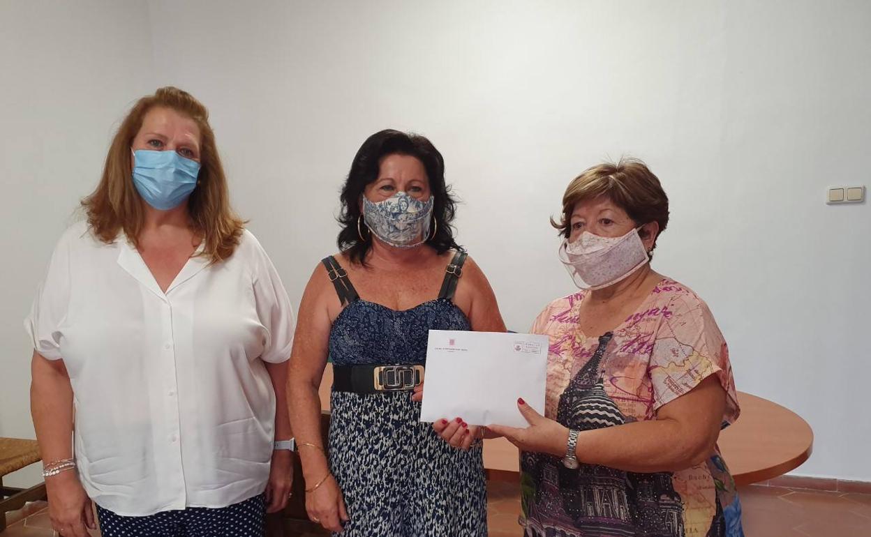 La monitora del taller de Costura Básico Elia Garrido entregó ayer el dinero obtenido con la fabricación de mascarillas a la asociación contra el Alzheimer ' ... 21 de septiembre'. El donativo nace de la iniciativa de la costurera, que bajo el lema 'Mascarillas con memoria, ha conseguido vender 152 de estos objetos que tan imprescindibles se han vuelto en la vida cotidiana, y todo el dinero recaudado ha sido dado a la asociación.