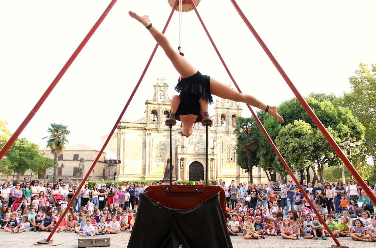 Los niños también fueron protagonistas. En lo que a programación se refiere, dentro del apartado de teatro de calle, la monumental plaza Vázquez de Molina sirvió de escenario por la tarde para el espectáculo 'La Coquette' a cargo de la compañía Kanbahiota Troupe, cuyos dos integrantes hicieron todo tipo de acrobacias, incluso en el trapecio, hilándolo todo con muy buen humor.