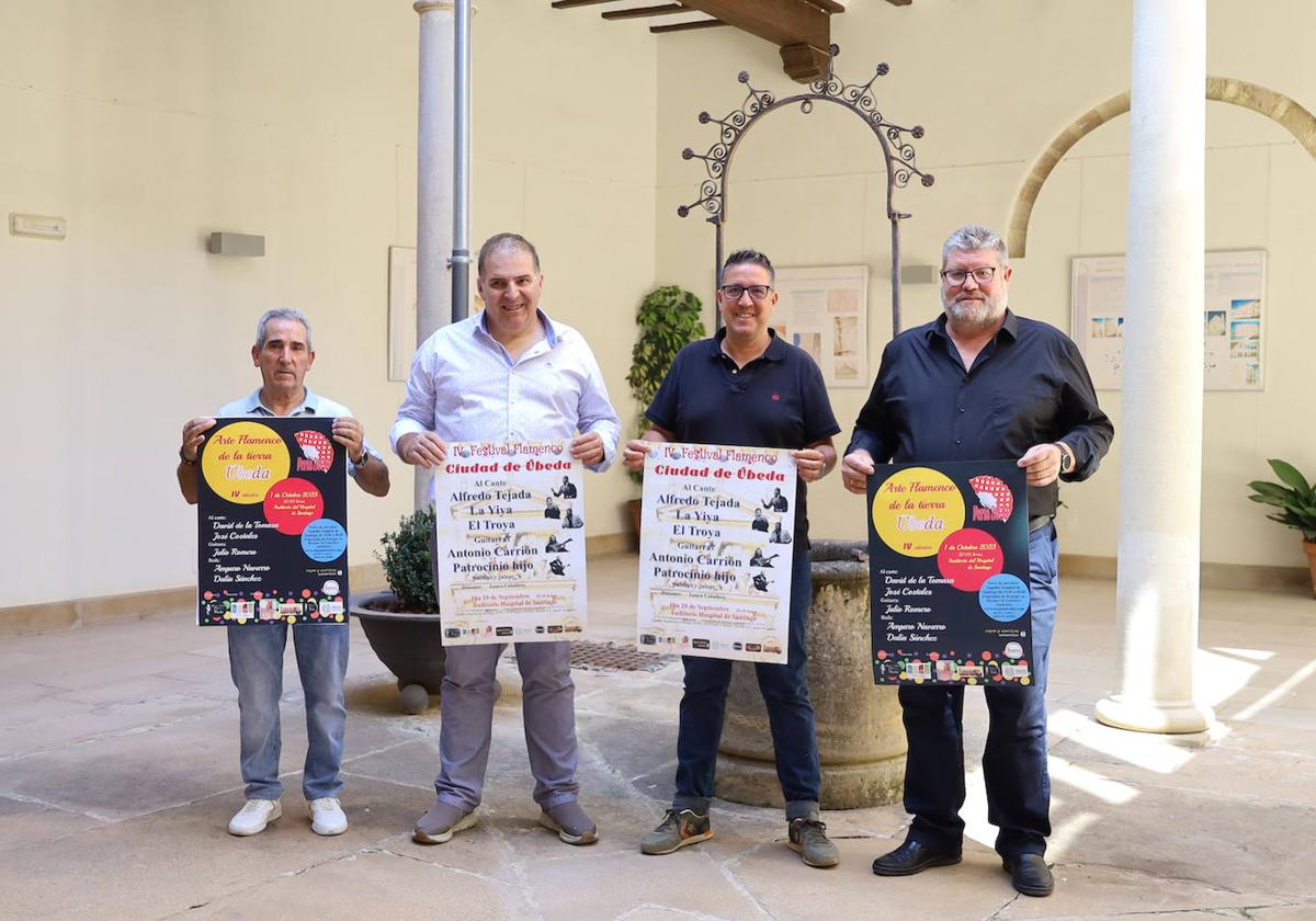 En concreto, los días 29 de septiembre y 1 de octubre, respectivamente, se podrá disfrutar del Festival Flamenco 'Ciudad de Úbeda' y del espectáculo 'Arte flamenco de la tierra: Úbeda', que en ambos casos celebrarán su cuarta edición. «El flamenco es Patrimonio de la Humanidad, al igual que nuestra ciudad. Es un arte que está presente en nuestro día a día, y aún más en nuestra feria», dijo el concejal de Festejos, Jerónimo García, quien presento las dos veladas junto al vicepresidente del colectivo organizador, Francisco López Marín.
