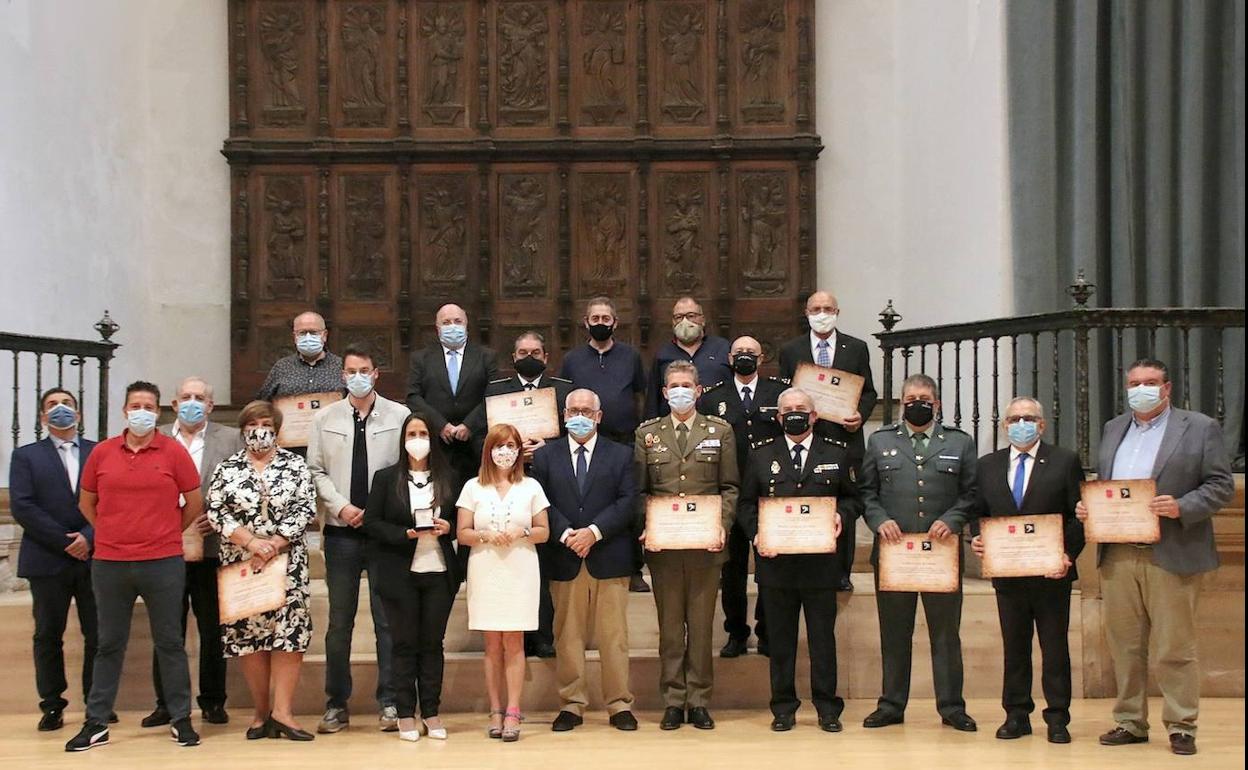 Del parque de Bomberos y de la Policía Local recibieron los reconocimientos sus respectivos jefes, Rafael Marcos y Francisco Muro; de Protección Civil estuvo el coordinador de los servicios Covid-19, Antonio Ángel Poisón; del servicio municipal de Mantenimiento y Limpieza asistió su coordinador jefe, Miguel Sánchez; y en representación del comercio, industria, talleres, asesorías, despachos y grandes superficies, como servicios básicos, subió al escenario el presidente de Alciser, Bartolomé González.