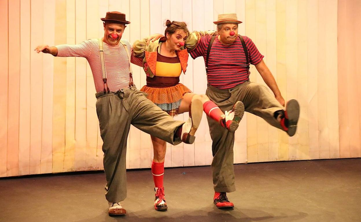 Son payasos de circo y de libro, tres personajes bien definidos que juegan, ríen, bailan y sueñan en la pista para hilar diferentes números de corte clásico en una única función que no tiene desperdicio. Le sacan partido a cada palabra, a cada gesto, a cada objeto y cachivache que sacan de sus maletas o de bambalinas. Con todo ello, junto a la experiencia circense y teatral de los tres, el resultado no puede ser otro: risas y aplausos.
