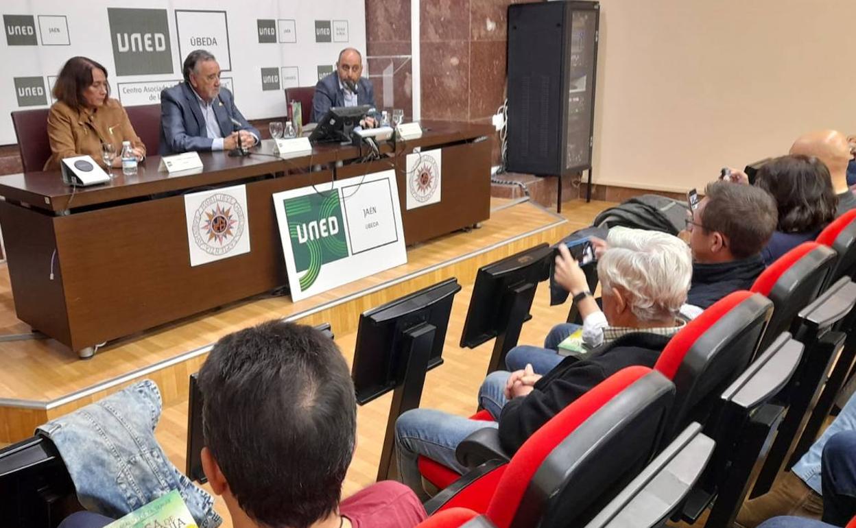 El ubetense Jesús Maeso de la Torre, uno de los autores más destacados de novela histórica, presentó ayer en su ciudad el que es su ... último trabajo, titulado 'La rosa de California'. Ocurrió durante un acto que reunió a numerosos lectores en la sede de la UNED, donde el escritor habló de su obra en conversación con el profesor Vicente Ruiz, paisano y buen amigo. Con sus conocimientos de lo histórico, lograron una presentación muy distendida, que despertó el interés por conocer más sobre el contenido de la trama. También intervino María Luisa Grande, directora de la UNED.