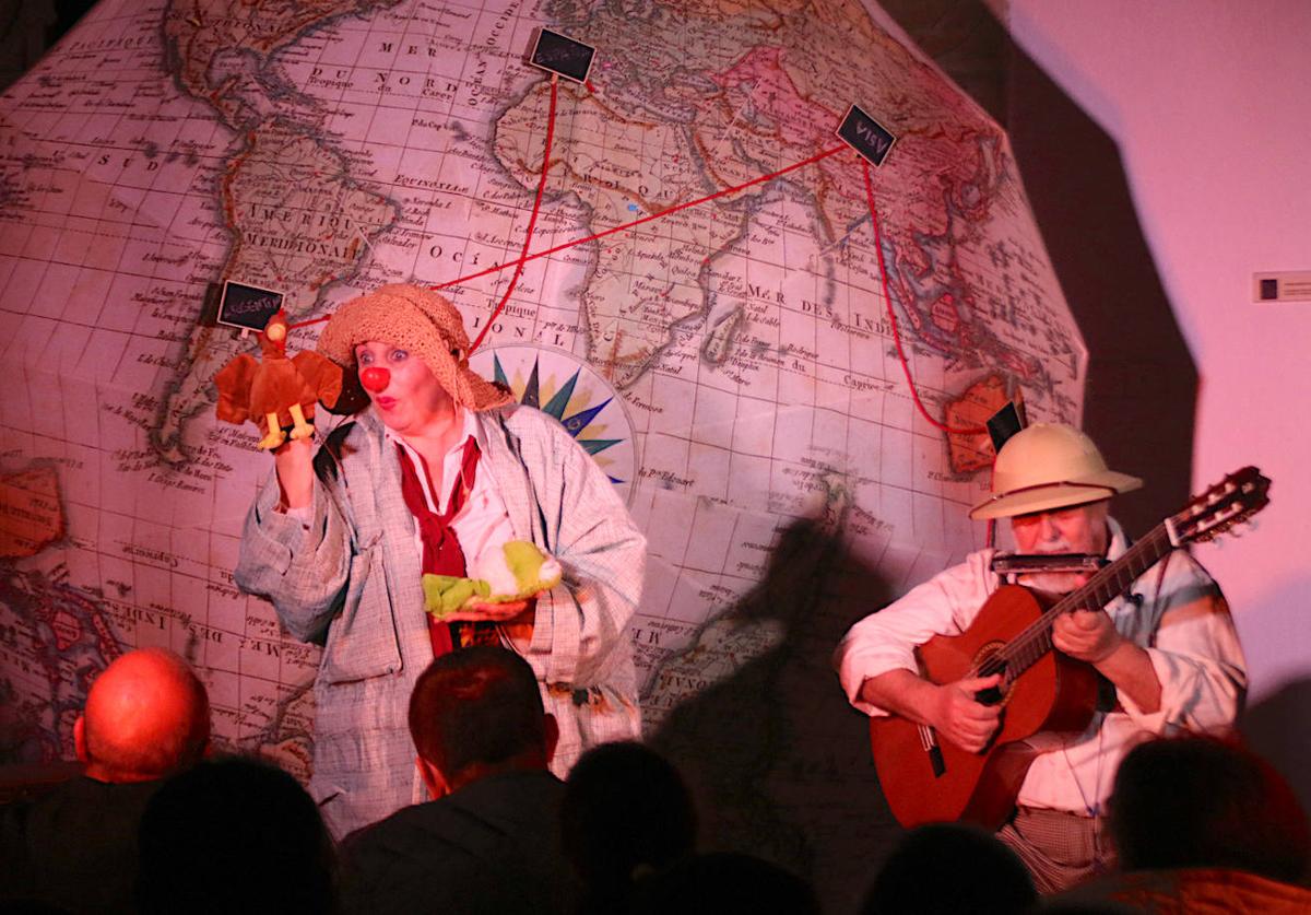 Carmela se fue con un circo, a ganarse la vida y a escapar de un mundo en blanco y negro que la asfixiada. Y con aquel circo viajó por el mundo y trajo historias, contadas y cantadas con esa sabiduría y esa humildad de la gente que ilumina vidas. Historias que fueron surgiendo de una maleta repleta de vidas de gentes de aquí y de allá que siempre nos hacen crecer. De esta forma, a través de las vivencias de la abuela Carmela, el público pudo ver el mundo sin fronteras ni banderas, el mundo de la gente sencilla.