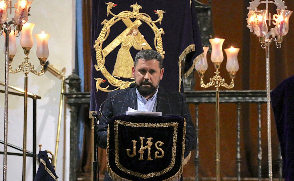 Respecto a su experiencia en actos cofrades, pronunció en 2008 una recordada Exaltación de la Semana Santa, organizada por la cofradía de la Sentencia, y fue el presentador del cartel oficial de la Semana Santa de Úbeda 2012, por designación de la hermandad de la Santa Cena. También fue pregonero de la Romería de la Virgen de Guadalupe en 2013.
