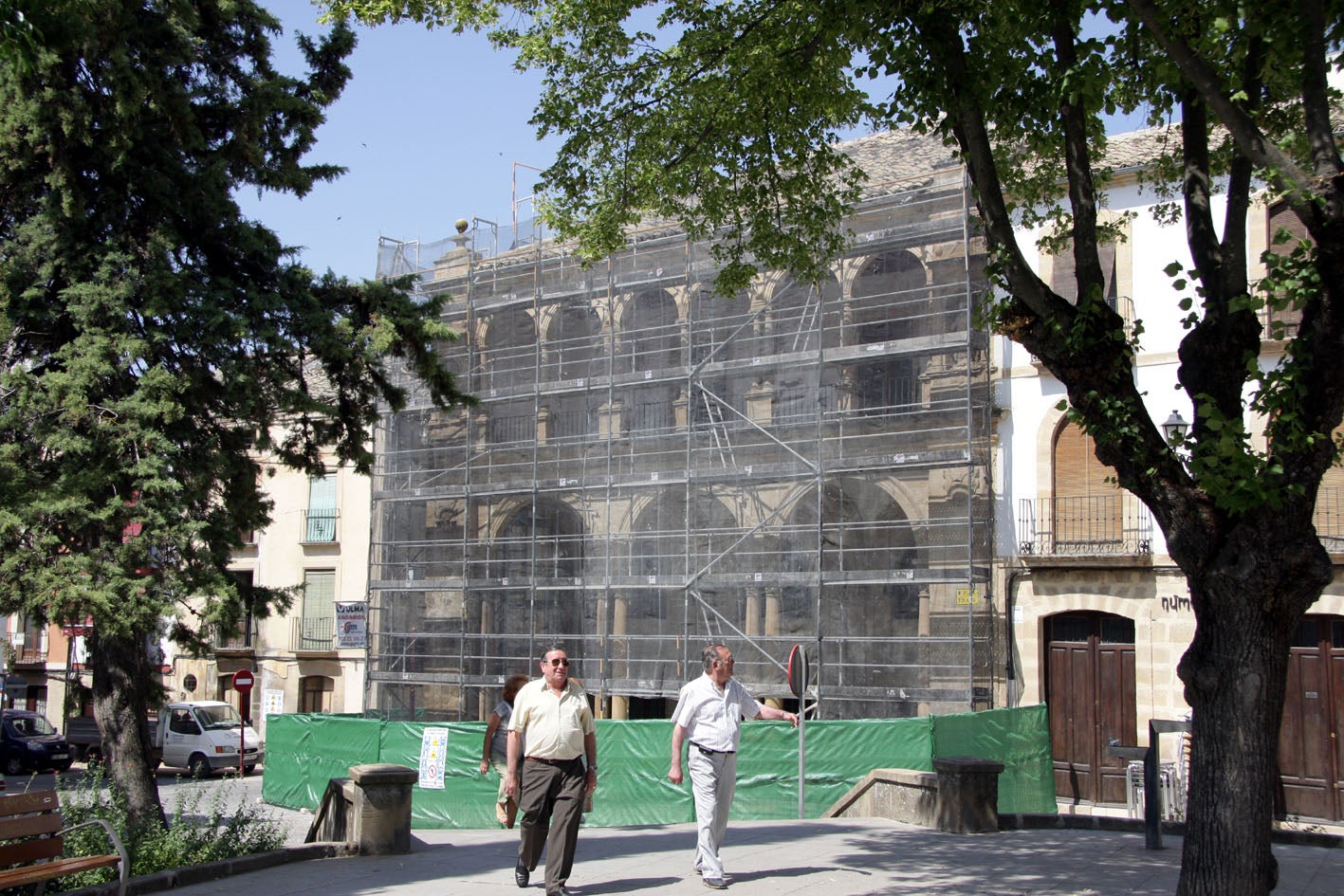 Continúan desarrollándose las obras de adecuación y mantenimiento en las Antiguas Casas Consistoriales de Úbeda, edificio situado en una esquina de la plaza Primero de Mayo que actualmente alberga el Conservatorio Profesional de Música María de Molina. Las actuaciones comenzaron el pasado 20 de junio, hace algo más de un mes y entre sus objetivos está resolver los problemas con las humedades que presentan las cubiertas y la parte superior de la fachada principal, más concretamente la esquina sur.