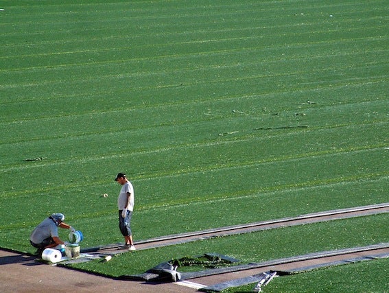 Comienza la colocación del césped artificial en el estadio de San Miguel