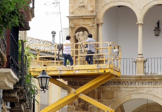 Tras cerca de una década de ausencia, en la mañana de ayer viernes volvió a su hornacina de la fachada de las antiguas Casas Consistoriales de Úbeda la escultura en piedra de San Miguel que tradicionalmente presidía este lugar. Totalmente restaurada, allí lucirá como nueva, especialmente el próximo jueves, 29 de septiembre, día de la festividad del Arcángel.