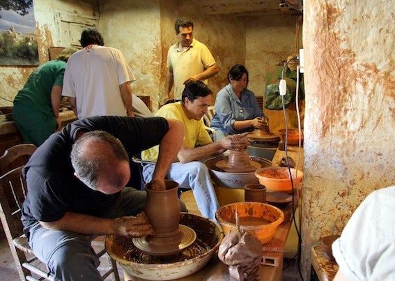 Pero además conocerán todo el proceso de la cerámica, desde que se amasa la arcilla hasta que se cuece en el horno árabe, pasando por las técnicas de decoración y esmaltado. Para ello dispondrán de materiales como arcilla, engobes, óxidos, esmaltes, tornos, horno, combustible y herramientas.