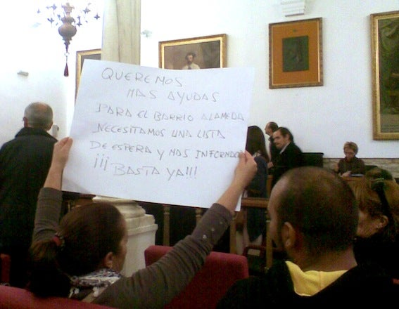 Vecinos del barrio de la Alameda de Úbeda se dieron cita en el salón de plenos del Ayuntamiento, durante la sesión plenaria de la corporación municipal celebrada el martes, para mostrar su malestar por la ocupación ilegal de viviendas que se viene produciendo en la barriada desde hace algún tiempo.