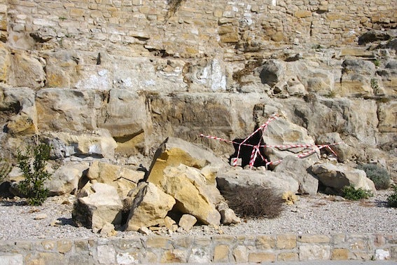 Los efectivos del cuerpo de Bomberos de Úbeda tuvieron que intervenir en la tarde del pasado lunes bajo el lienzo de muralla situado junto a la Fuente de la Saludeja, en la redonda de miradores, después de que una serie de piedras, algunas de gran tamaño, se desprendieran y fueran a parar a la zona ajardinada, el acerado e incluso el lugar por el que transitan los vehículos.