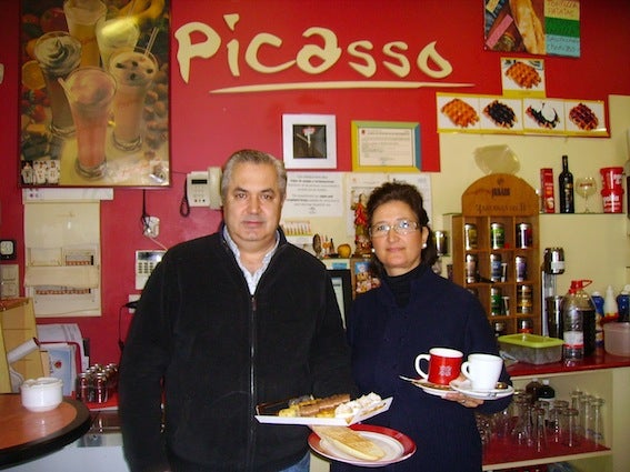 Por unos motivos o por otros, la cuestión fue que eligieron nuestra ciudad, y desde que se produjo su llegada ya han pasado más de 18 años. Su trabajo, al igual que en los tiempos de Cataluña, ha estado y está muy ligado al mundo de la hostelería, siendo los primeros años más por cuenta ajena, hasta que un día decidieron montar su propio negocio, en concreto una cafetería, la Picasso como se conoce popularmente entre clientes y amigos, y que está situada en la calle del mismo nombre. Para mayo de este año 2012 celebrará su octavo cumpleaños.