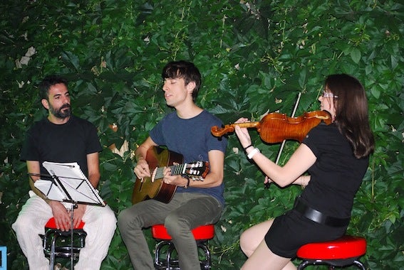 En este caso además, en el que fue su primer concierto en la ciudad, se rodeó de dos amigos, uno a la guitarra y otra ... al violín.