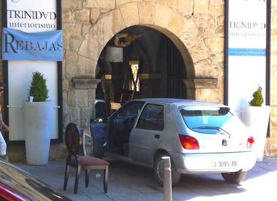 Se estampa contra una tienda de muebles tras salir de un garaje de la acera de enfrente