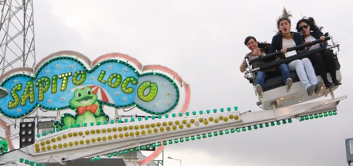 No sólo los más pequeños disfrutaron de las atracciones, pues muchos mayores aprovecharon el día para rememorar su niñez y darse un buen meneo en los carruseles aptos para su edad. La feria es para los valientes. Con ello, hubo quienes se quitaron varios años de encima a golpe de vaivenes en la 'barca vikinga' o de saltos arriba y abajo en el 'sapito loco'. Caso aparte es el de los coches de choque, siempre abarrotados al ser punto de encuentro de decenas de jóvenes y adolescentes.
