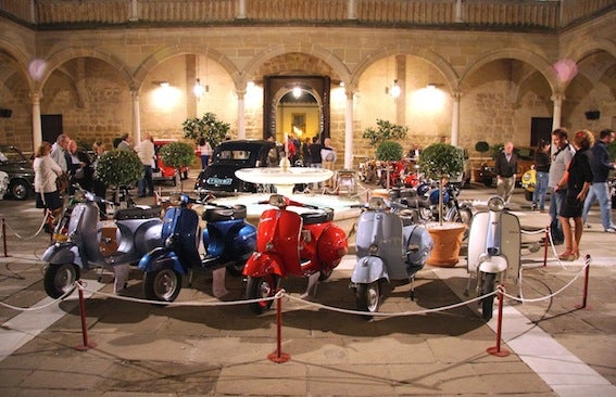 El patio del centro cultural Hospital de Santiago acoge una exposición de motos y coches antiguos que ha sido organizada por el Ayuntamiento y el club 'Unos amigos y sus clásicos'. Se trata de un grupo de gente que comparte su pasión por los vehículos clásicos y de época cuyo objetivo es fomentar el cuidado, la restauración y mantenimiento de coches y motos de antaño así como desarrollar una serie de actividades lúdicas en la provincia y fuera de ella, conociendo y disfrutando el entorno paseando en estos vehículos.