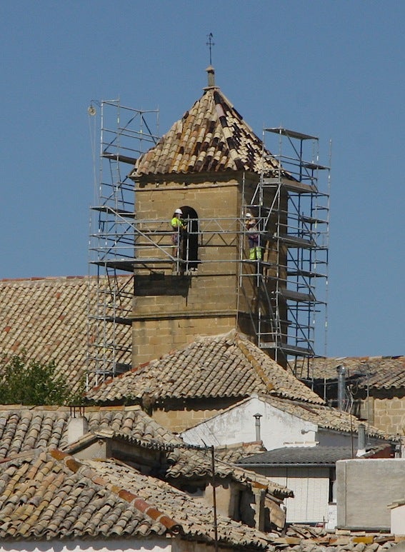 La Unión de Cofradías de Semana Santa ya está interviniendo en la torre de la iglesia de Santo Domingo de Úbeda. En días pasados se procedió a la instalación de todo el andamiaje y esta semana se comenzará a trabajar en las cubiertas, que presentan algunas deficiencias.