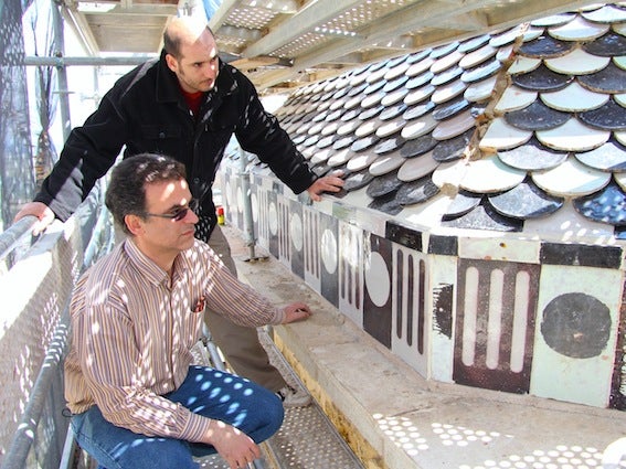 Tanto fue el interés y la implicación de los responsables de Alameda en este proyecto que, una vez realizadas las tejas, una a una mediante moldes, esmaltado, vidriado y cocción, estuvieron revisando a pie de obra su colocación en el torreón del castillo de La Guardia.