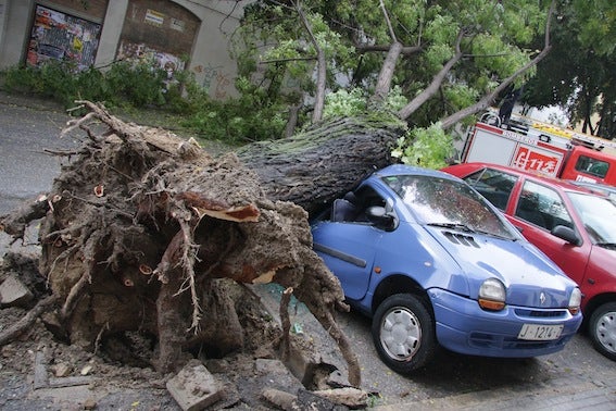 Según testigos presenciales, de buenas a primeras el árbol ha empezado a volcarse desde la raíz hasta que ha caído fuertemente sobre el asfalto, causando ... un gran susto a peatones y conductores, quienes se han retirado rápidamente, evitándose así lo que podía haber sido una tragedia. Y es que, el peso del árbol es considerable, tal y como se puede apreciar con solo echar un vistazo a cómo ha quedado el turismo afectado. Está totalmente aplastado.