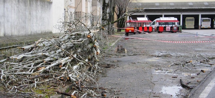 Los Bomberos llevan una jornada ajetreada y son numerosas las salidas que han tenido que hacer para resolver asuntos relacionados con desprendimiento de ramas, tejas y cornisas. Hasta el momento no se han registrado incidentes de gravedad.