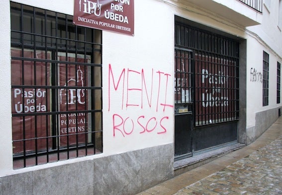 La sede de Iniciativa Popular Ubetense (IPdeU), situada en un local de la parte baja de la calle Las Parras, fue objeto durante el fin de semana de varias pintadas. Concretamente, a ambos lados de la puerta aún a día de hoy se pueden leer las palabras «mentirosos» y «fascistas». Desde la formación política se han condenado estos actos, calificándolos de «agresión con insultos», y los han puesto en conocimiento de la Policía Nacional. También los han denunciado ante el juzgado a la espera de que se adopten las medidas oportunas.