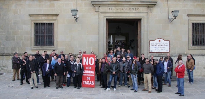 Representantes del sector hostelero de la ciudad se concentraron a medio día de ayer viernes ante las puertas del Ayuntamiento para protestar contra la subida de las tasas de las terrazas, cifrada en un 32,5 por ciento. Una reivindicación que pretenden repetir todas las semanas hasta que el equipo de gobierno reconsidere la medida, la cual consideran totalmente desproporcionada, independientemente de la coyuntura económica actual.