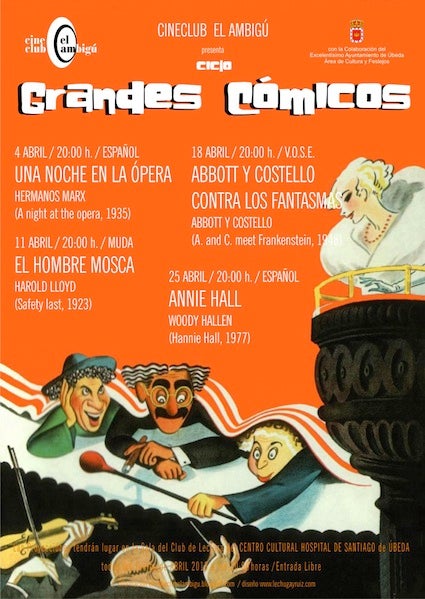Tras disfrutar de 'Una noche en la ópera' (1935) de los Hermanos Marx y de 'El hombre mosca' (1923) de Harold Lloyd, los amantes del ... séptimo arte y de la comedia podrán divertirse el próximo 18 de abril con 'Abbott y Costello contra los fantasmas' (1948) de los propios Abbbott y Costello, y el 25 de este mismo mes con 'Annie Hall' (1977) de Woody Allen.