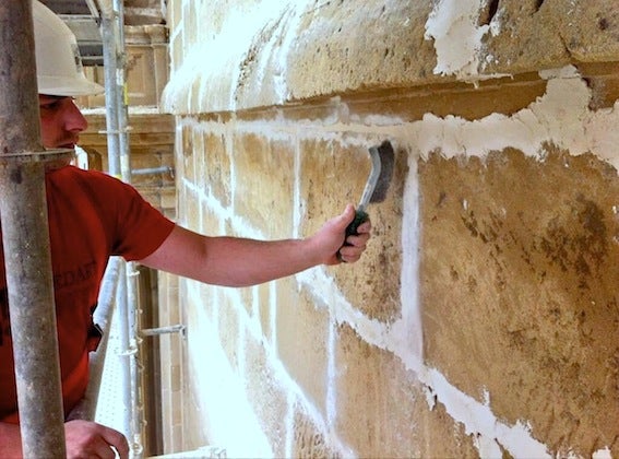 Previamente, cuando se produjeron los desprendimientos y para preparar la intervención, se realizó una inspección ocular con una grúa de gran altura, lo que permitió hacer un análisis de la situación de la fachada, la torre y las cubierta, lo cual derivó después en el proyecto de obras que se ejecuta en estos días.