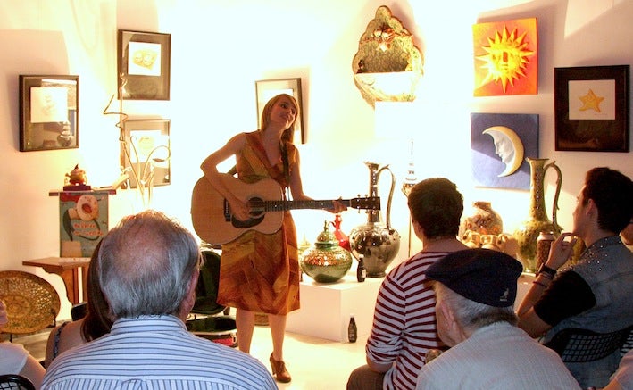 El recital se celebró en la sala de exposiciones que la Asociación de Artesanos de Úbeda tiene en el Palacio de Don Luis de la ... Cueva, entre piezas de alfarería, forja, piedra, ebanistería, cartón piedra... Mucho arte ubetense reunido en un mismo espacio, incrementado además por el hecho de que la intérprete eligiera para la ocasión un vestido de su paisano Moisés Nieto, valor de la moda totalmente al alza. Menudo tándem el de este par de dos.