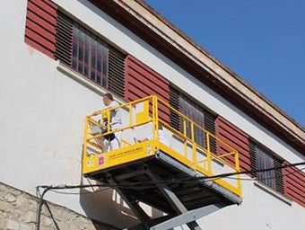 Paralelamente, el área de Mantenimiento del Ayuntamiento está actuando de nuevo en el Mercado Municipal de Abastos, atendiendo una vieja reivindicación de los comerciantes, con el pintado de la fachada exterior del edificio. Una actuación que no se acometía desde hace más de 20 años. Los trabajos, que se han visto paralizados unos días debido a los ajustes de las vacaciones de los pintores y que continuarán a partir de esta semana ya de forma ininterrumpida, durarán un mes y respetarán el color original albero, rojo y blanco del edificio. Por sectores y con la ayuda de una plataforma elevadora, primero se procede al lijado y después se aplica la nueva capa de pintura.