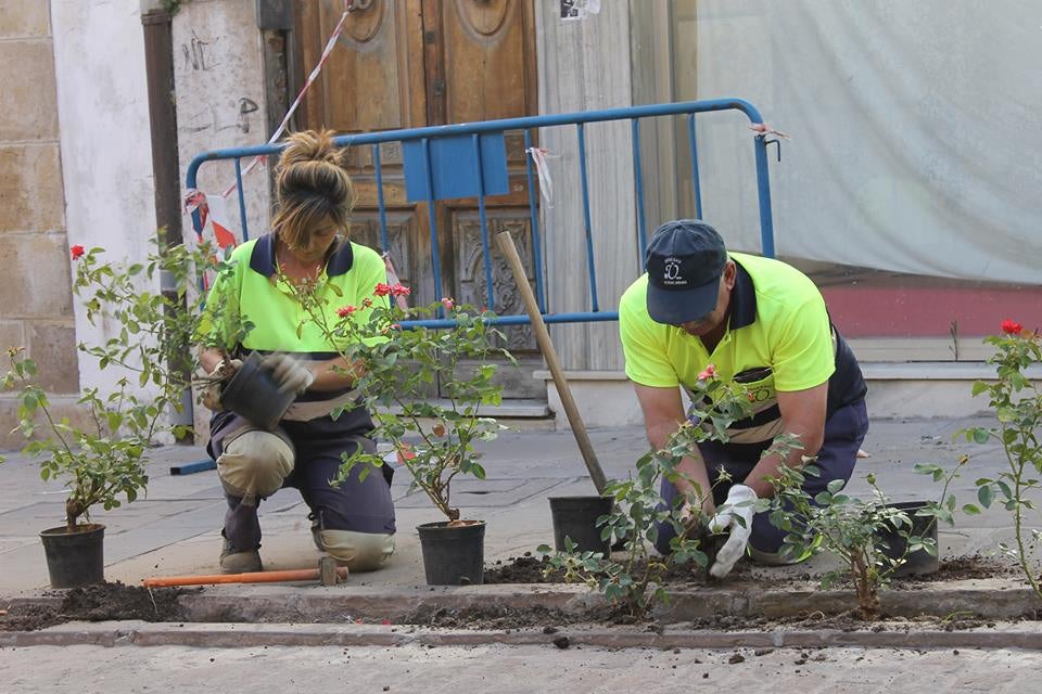 Julio también es el mes de las flores, al menos en la calle Trinidad, donde los trabajos de replantación de parterres realizados por el área de Mantenimiento ya pueden constatarse desde el pasado miércoles. En esta ocasión, el ejemplar elegido para destacar el decoro, el colorido y la buena imagen de esta importante arteria de la ciudad ha sido el conocido como 'rosal enano'.