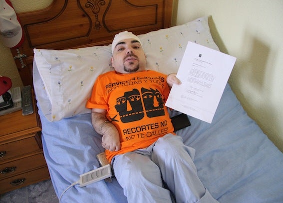 La carta de despido le ha llegado a Manolo directamente a la cama y en un mal momento, quizá en uno de los peores de su vida, y eso que desde que nació ha tenido que hacer frente a incontables problemas y complicaciones, de muchas de las cuales se pensó que no saldría, aunque siempre logro seguir hacia adelante. El hecho es que, acostumbrado a mucha actividad diaria y a desenvolverse con cierta independencia pese a las limitaciones que le marca su discapacidad, desde hace tres meses y una semana se encuentra postrado en la cama aquejado de fuertes dolores. Ni siquiera puede hacer uso de su silla de ruedas motorizada con la que habitualmente se le veía recorriendo la ciudad.