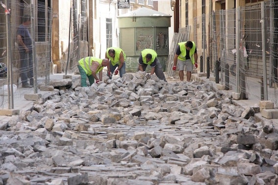 Obras en la calle Compañía para eliminar baches y reparar la red de saneamiento