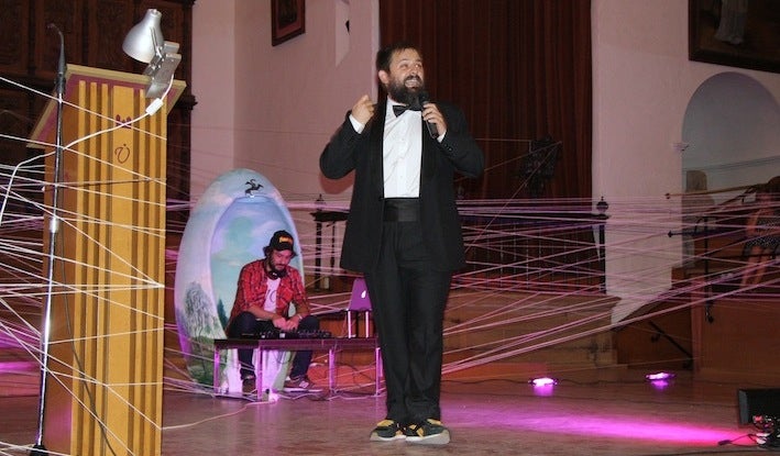 Reforzando esa figura de quien anima el cotarro en la feria poniendo música, un DJ (Rafa Gil, de Madrid, director creativo publicitario) estuvo pinchando en todo momento sobre el escenario, creando la banda sonora al pregón con temas de lo más variado. En esas, Fortis reivindicó la noche para divertirse, algo en lo que, según dijo, Úbeda anda de capa caída.