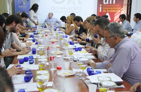 El Centro de Interpretación Olivar y Aceite y la Universidad Internacional de Andalucía (UNIA) celebraron ayer jueves una jornada sobre cata y maridaje de virgen extra con el fin de que los participantes pudieran descubrir organolépticamente diferentes aceites de oliva. La actividad, dirigida a estudiantes o titulados universitarios que han cursado estudios relacionados con esta formación, a integrantes de empresas oleícolas, de hostelería y restauración, así como a aficionados, se estructuró en dos partes: una teórica y otra práctica.
