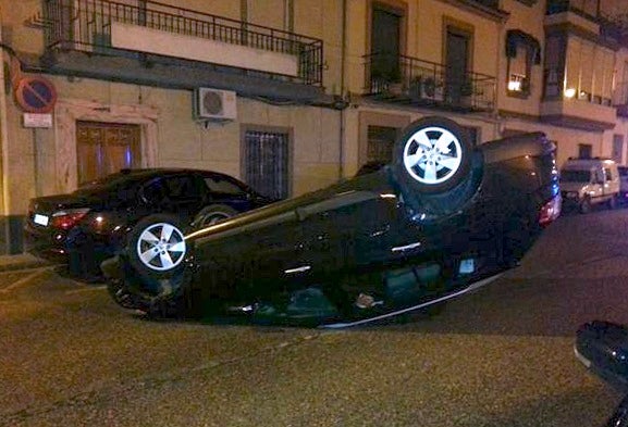 Aparatoso accidente anoche en la calle Blas Infante de Úbeda, en el tramo situado entre la avenida de Linares y el Parque Norte, donde volcó un turismo en mitad de la vía tras colisionar con otro coche que allí se encontraba estacionado. Los hechos ocurrieron a eso de la una y media de la madrugada y dieron un buen susto a los vecinos, algunos de los cuales se despertaron debido al incidente.