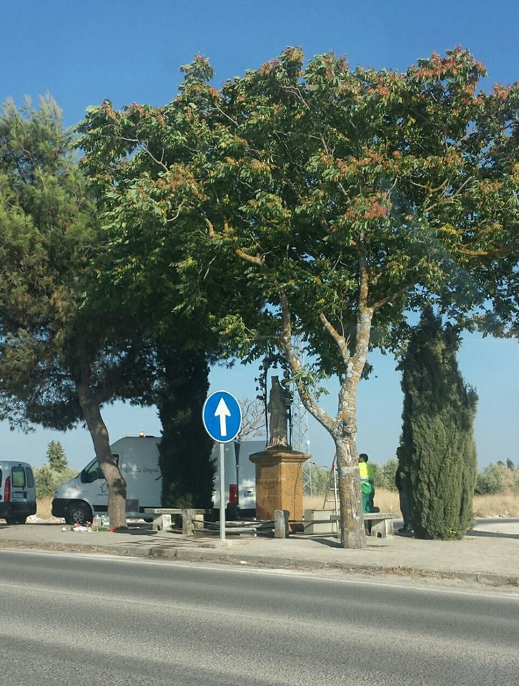 Regresa la normalidad al monumento dedicado a la Virgen de Madre de Dios del Campo, situado en la antigua carretera de Torreperogil. Si el pasado sábado saltaba la alarma ante el incendio que sufrió la imagen de piedra y que los bomberos supieron sofocar a tiempo, esta tarde han pasado a la acción los operarios del servicio de limpieza.