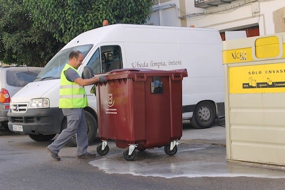 El Ayuntamiento ha procedido a la renovación de cuarenta contenedores de basura en Úbeda. Tras retirar los antiguos, de color verde y bastante deteriorados, se ha llevado a cabo la limpieza y desinfección de las zonas en las que estaban antes de la instalación de los nuevos, de color rojo carmelitano, «como la bandera ubetense», para reducir el impacto visual en el casco histórico. Así lo informó el alcalde, José Robles, quien presentó en días pasados esta acción, acompañado por el concejal de Mantenimiento, José Antonio Jiménez.