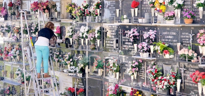 Como cada año por estas fechas, el área de Mantenimiento del Ayuntamiento está realizando diferentes tareas de acondicionamiento en el Cementerio Municipal de San Ginés para que esté en las mejores condiciones de cara a la celebración del Día de Todos los Santos, en torno al cual cientos de personas visitarán el lugar. Así, en estos días se puede ver a numerosos operarios interviniendo en diversos puntos del recinto y sus alrededores junto con los ciudadanos que limpian, ordenan y decoran con flores el lugar donde descansas sus seres queridos.
