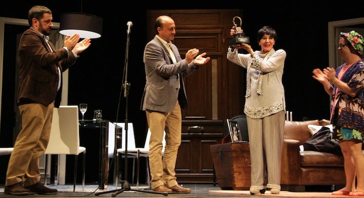 La veterana actriz recibió el premio tras protagonizar junto a Hugo Aritmendiz la aplaudida obra titulada 'Olivia y Eugenio' dentro de la vigésima Muestra de Teatro de Otoño de Úbeda, un ciclo que por primera vez se prolongará hasta diciembre con actividades todos los fines de semana desde su inauguración el 28 de septiembre pasado.