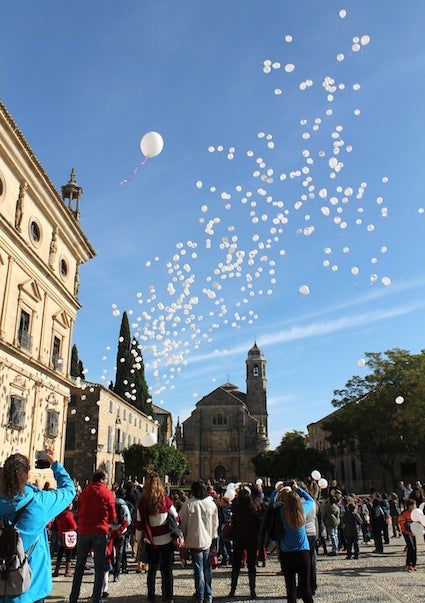 Unos 350 escolares de Úbeda y sus pedanías celebraron este lunes el Día del Patrimonio Mundial con un lanzamiento de globos que tuvo lugar en la monumental plaza Vázquez de Molina, auténtico buque insignia de la declaración de la localidad como Patrimonio de la Humanidad por la Unesco. En realidad, la conmemoración oficial fue el domingo 16, pero se decidió esperar un día para compartir esta celebración con los alumnos de un total de cinco centros educativos.