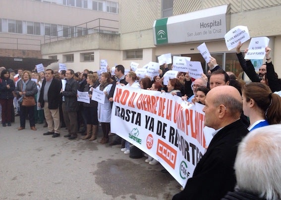 Más de 200 personas se concentraron este viernes ante el hospital San Juan de la Cruz de Úbeda contra la decisión de cerrar temporalmente la planta de Medicina Interna «únicamente por criterios economicistas». Así lo indicó Miguel Ángel Cazalilla, secretario de Salud, Servicios Sociales y Dependencia en la Federación de Servicios Públicos de UGT, sindicato que, junto a CCOO, Satse y CSIF, secundó la protesta, que calificó de «un éxito».