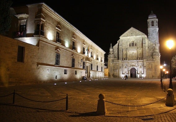 En el caso de Baeza ya se puede ver el Palacio de Jabalquinto. Y la pieza de Úbeda contará con una imagen panorámica de la monumental plaza Vázquez de Molina con el Palacio de Condestable Dávalos y la Sacra Capilla de El Salvador. Imagen sacada de una instantánea realizada por el fotógrafo ubetense Marcelo Góngora.